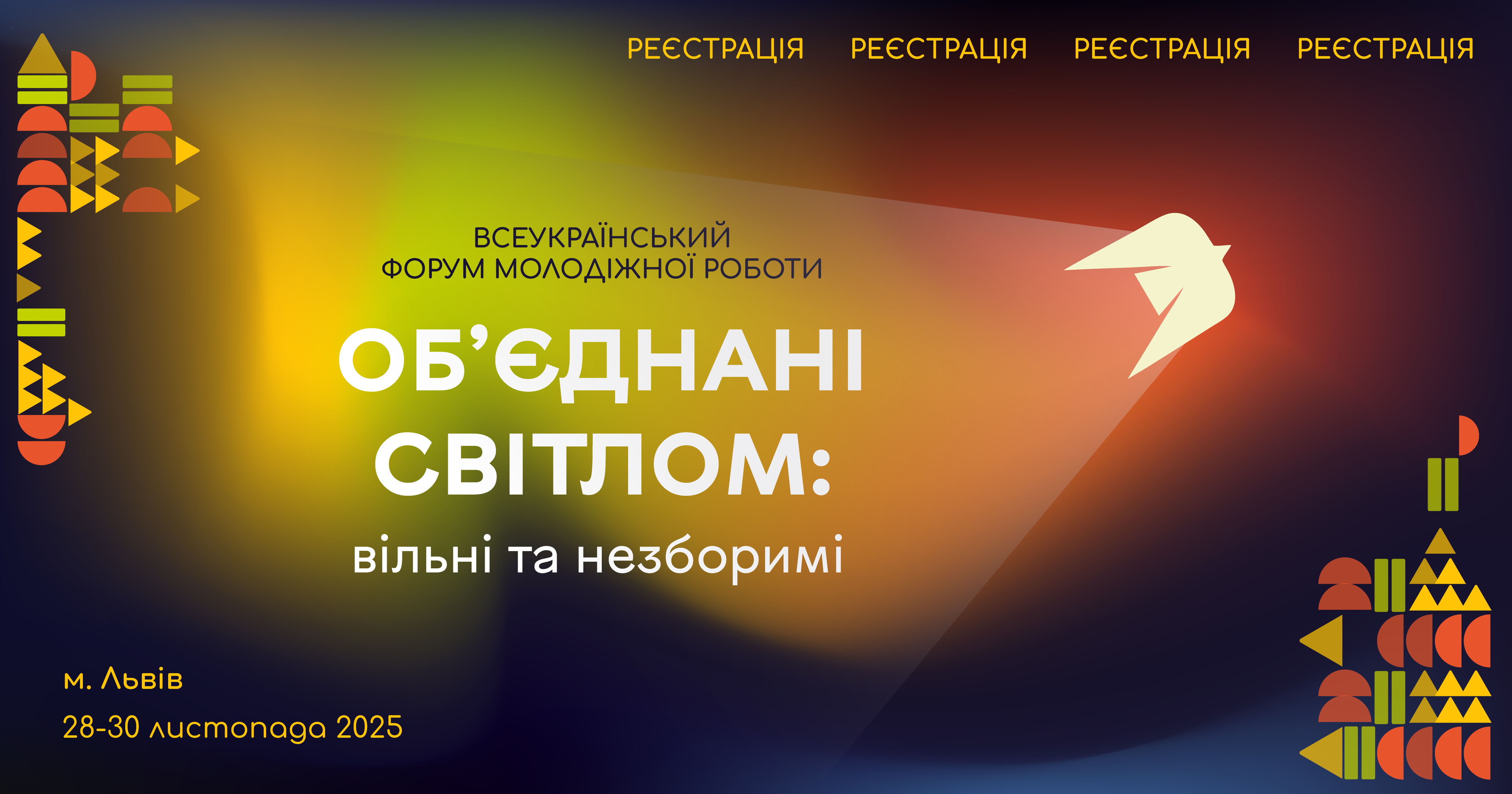 Офіційно відкрита реєстрація на Всеукраїнський форум молодіжної роботи, який відбудеться 28-30 листопада в м. Львів «Об’єднані світлом: вільні та незборимі»