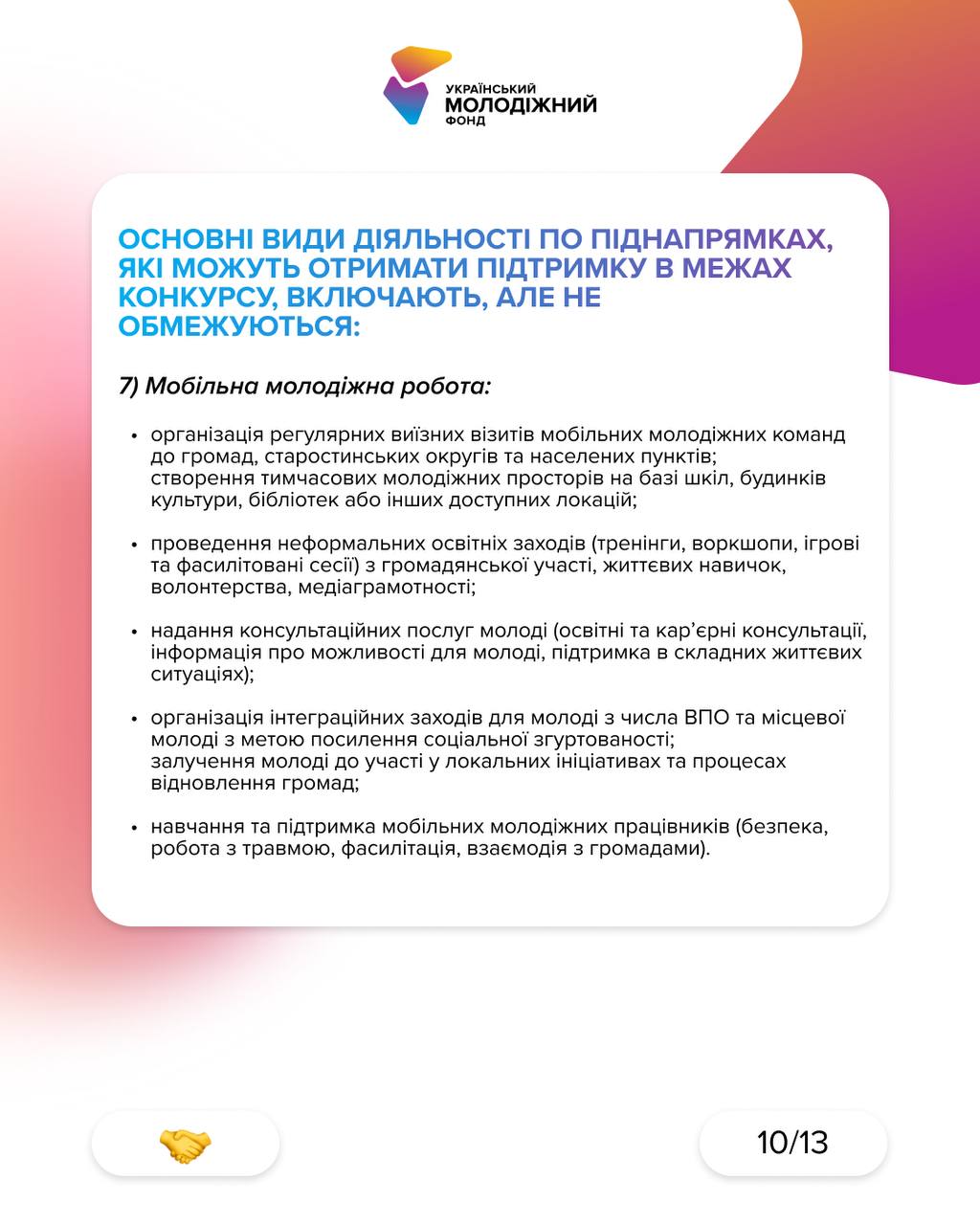 • мобільна молодіжна робота