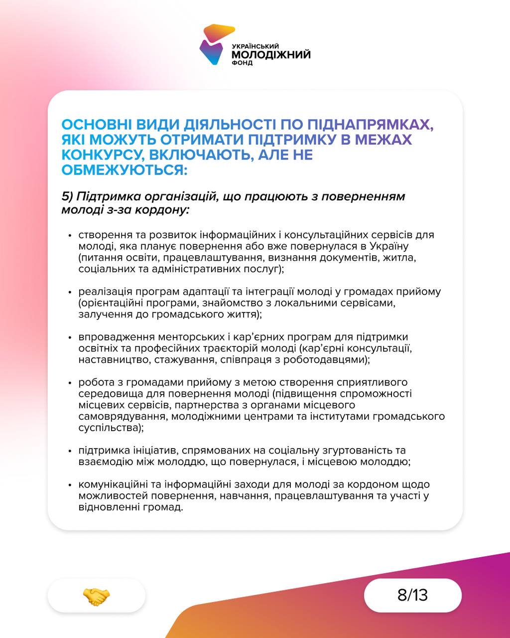 • підтримка молоді, що повертається з-за кордону