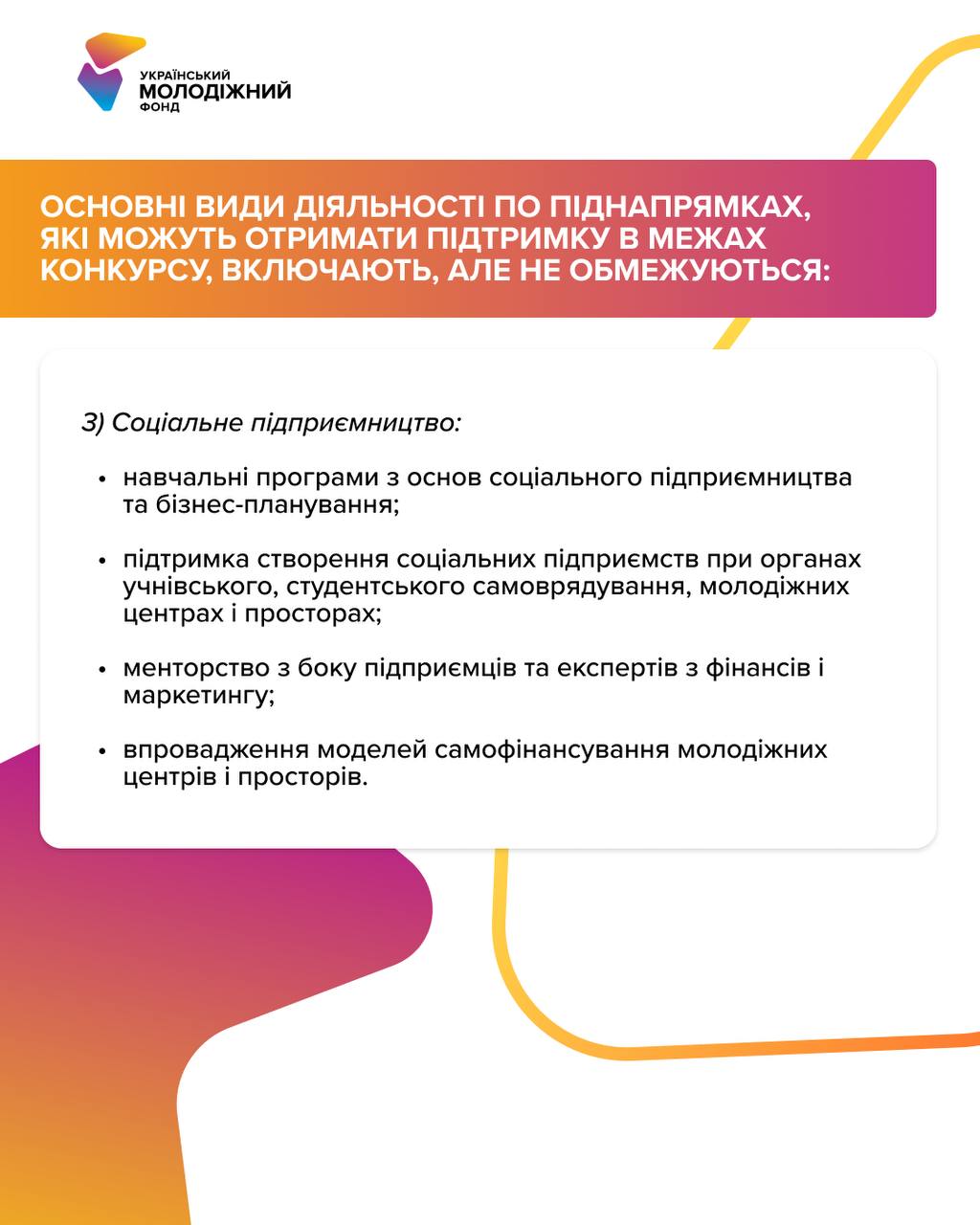 освітні програми з підприємництва, підтримка створення соціальних ініціатив у