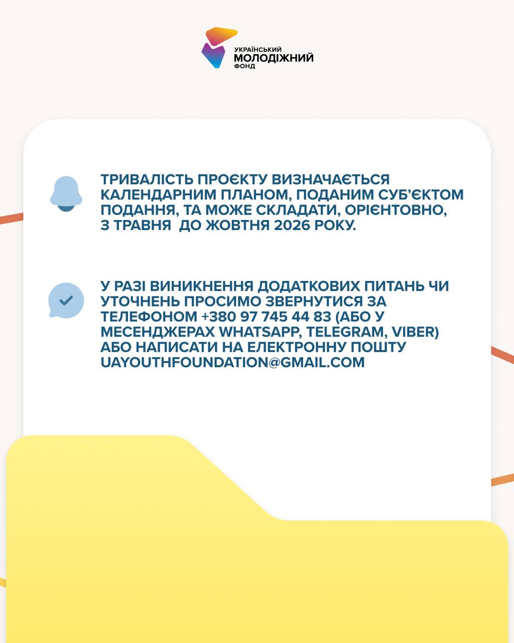 Якщо виникнуть питання - команда Український молодіжний фонд / Ukrainian Youth Foundation завжди на зв’язку: